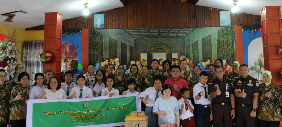 KEJATI SULUT, Manado – Ikatan Adhyaksa Dharmakarini (IAD) Wilayah Sulawesi Utara menyelenggarakan kegiatan bakti sosial bertajuk Berbagi Kasih dan Berkat dalam rangka menyambut Natal Tahun 2025. Kegiatan ini dilaksanakan sebagai wujud kepedulian sosial keluarga besar Adhyaksa bagi masyarakat dan internal Kejaksaan.